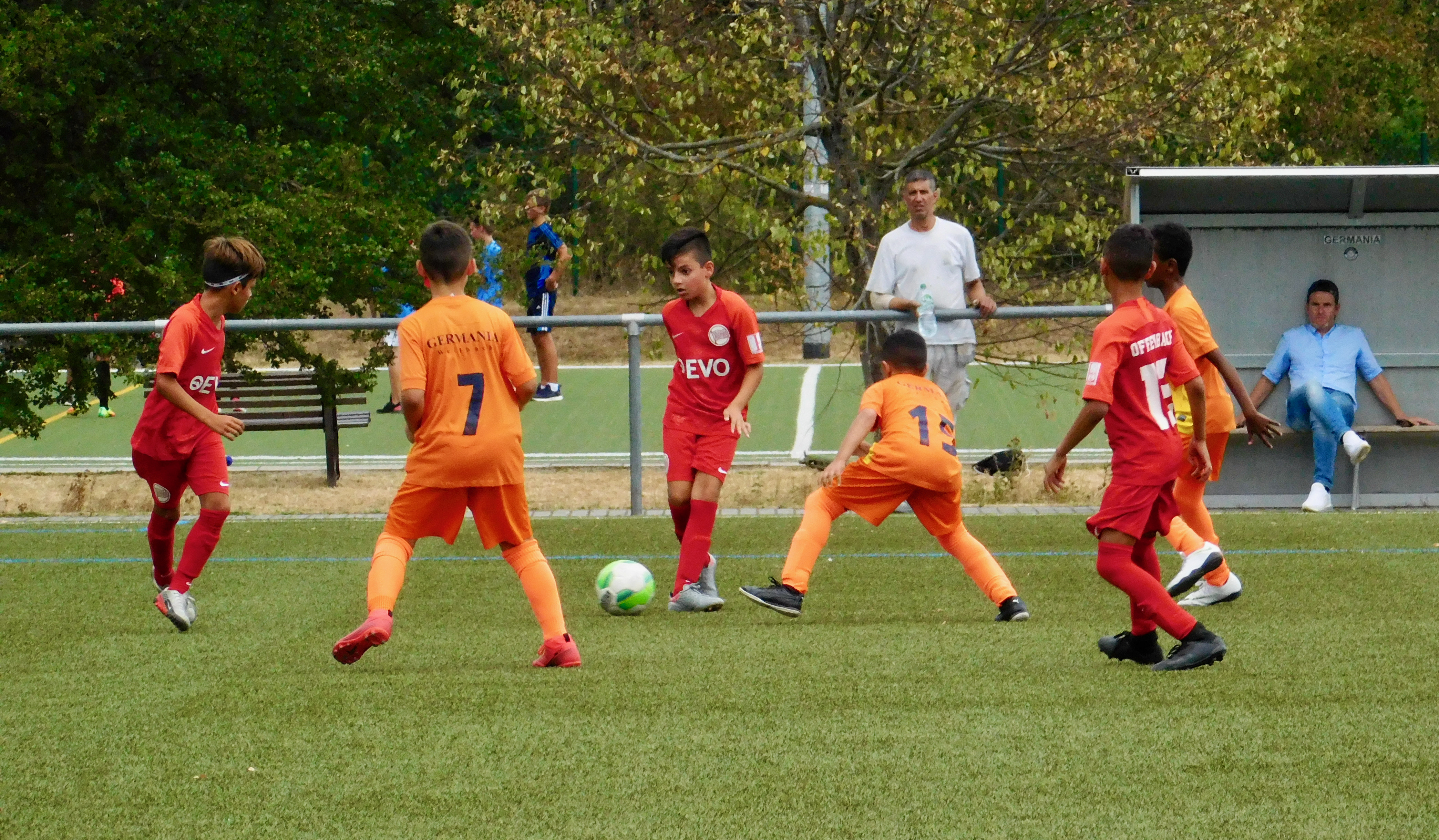 Im Gegensatz zum Auftaktspiel gegen Hessen Dreieich zeigte sich die U11 der Kickers von Anfang an sehr fokussiert und von Nervosität war nichts mehr zu spüren. In der Offensive erarbeiteten sich die Offenbacher zahlreiche Chancen und in der Defensive stand die Abwehr sehr stabil und ließ so gut wie keine Möglichkeit der Germania zu. Die U11 aus Offenbach setzte ihr kombinationsfreudiges Spiel fort und erspielte sich weitere sehenswerte Treffer zu einer sicheren und komfortablen Halbzeitführung. Auch die zahlreichen Wechsel während des Spiels hatten keinen Einfluss auf das Spielgeschehen und die Kickers dominierten auch Halbzeit 2. Einzig die Chancenverwertung wurde nicht mehr so konsequent wie in Abschnitt 1 der Partie genutzt. Der dritte Spielabschnitt zeigte ein unverändertes Bild des Spiels. Trotz der hochsommerlichen Temperaturen zeigten die jungen Kickers weiter viel Laufbereitschaft und Einsatz und dominierten das Spielgeschehen. Einzig der Wettergott machte zum Ende des Spiels einem gelungenen Abend einen Strich durch die Rechnung. Aufgrund eines aufziehenden Gewitters mit Starkregen wurde die Partie vorzeitig abgebrochen.